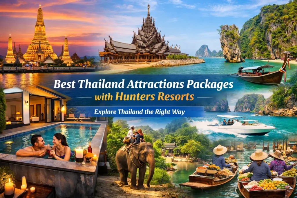 Thailand is a country filled with iconic landmarks, cultural treasures, tropical islands, and unforgettable experiences. At Hunters Resorts, we design the best Thailand attractions packages for travelers who want comfort, seamless planning, and authentic experiences — without stress or overcrowded itineraries.
