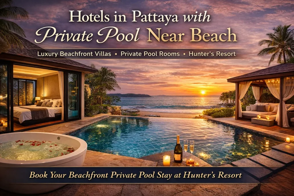 If you are searching for hotels in Pattaya with private pool near beach, Hunter’s Resort Pattaya offers the perfect combination of location, privacy, and comfort. With private pool villas, peaceful surroundings, and easy beach access, it stands out as an excellent choice for a premium Pattaya stay.