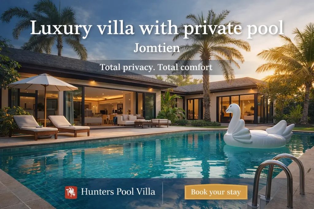 Don’t settle for a crowded hotel room. Level up your vacation by staying in a luxury villa with private pool in Jomtien. Whether you’re looking for a romantic weekend or a fun-filled family holiday, Hunters Resorts is your gateway to the perfect Pattaya experience.
